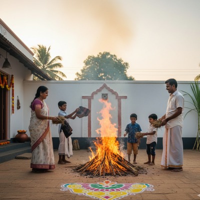 The sacred fire ritual with offerings and chants, invoking divine blessings and harmony.